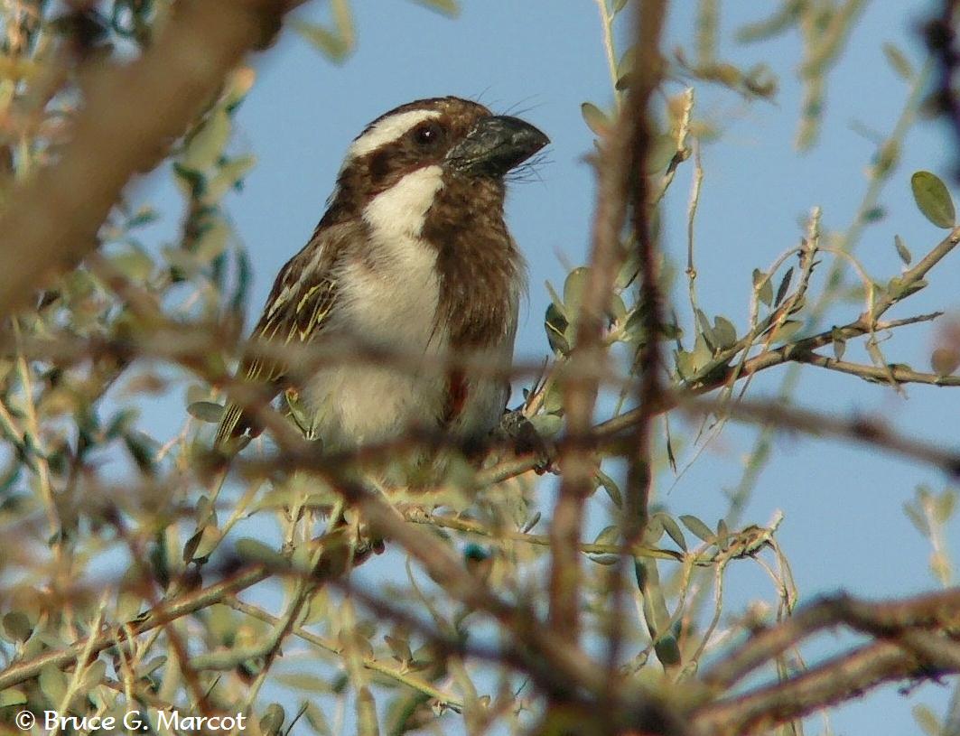 Explanation: This week and next, we are exploring the biota of one of the expansive lakes of the Rift Valley of east Africa, here in southern Kenya. In the arid upland Acacia thorn scrub that rings the lake reside many interesting birds. This week we have a good look at a Black-throated Barbet. What makes a bird a barbet? Barbets typically are chunky-bodied birds with large heads and thick bills. At the base of the bill, and sometimes on the chin, grow modified feathers called bristles. These are particularly evident in this week's photo. The function of bristles is unclear (Short and Horne 2001). At times, the bristles can be flattened against the bill, perhaps to avoid damage or as a social signal although this is unstudied. In an example of what may be evolutionary convergence, New World flycatchers (family Tytonidae) also sport facial bristles. Perhaps bristles also serve as a sensory organ helping the birds catch insects or other prey, but again this is little studied. African barbets are usually placed in the taxonomic family Capitonidae with other Old World barbets of Asia, but some authors place them in their own family Lybiidae. Black-throated Barbets occur only in east Africa. They are typically found dashing quickly among low trees, making it most difficult to secure a nice photo portrait. Oh, and Black-throated Barbets are really brown (and white). Go figure.