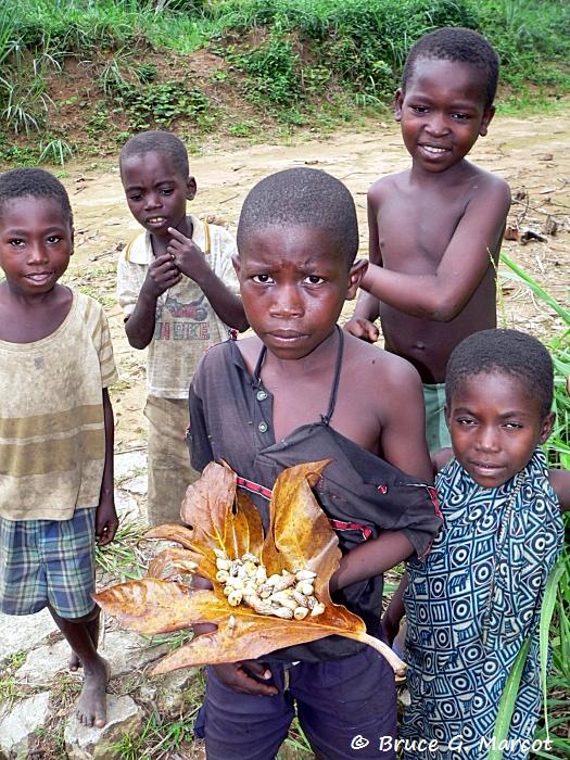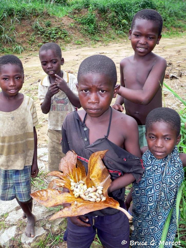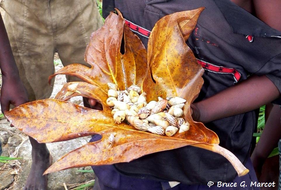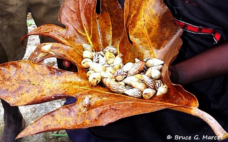 These boys are on a daily foraging expedition and have collected a bounty of terrestrial snails for dinner.