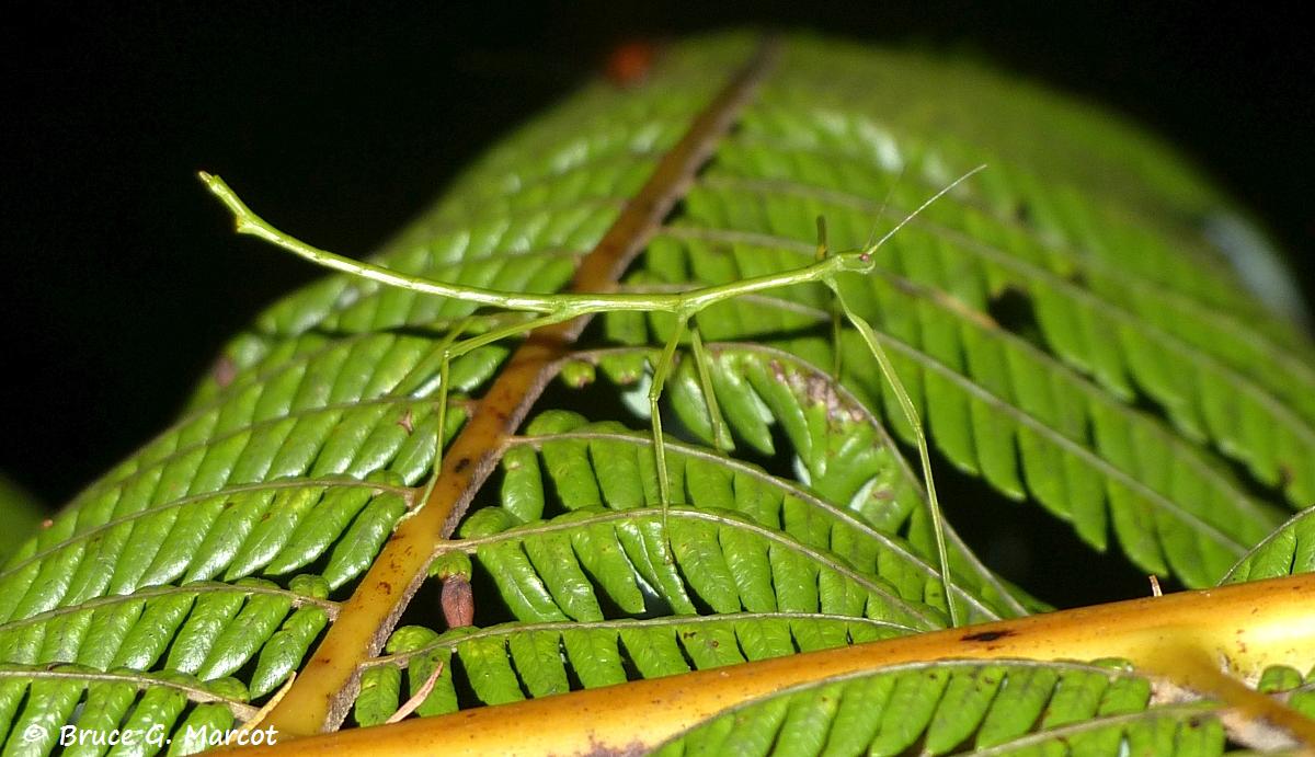 Explanation: This green twig sitting on a fern is actually a smooth stick insect that we found in the dead of a dark night in Waipoua Forest, northern North Island of New Zealand. It is relatively common but restricted to New Zealand, and tells some interesting stories about reproductive strategies, survival, and glaciers.