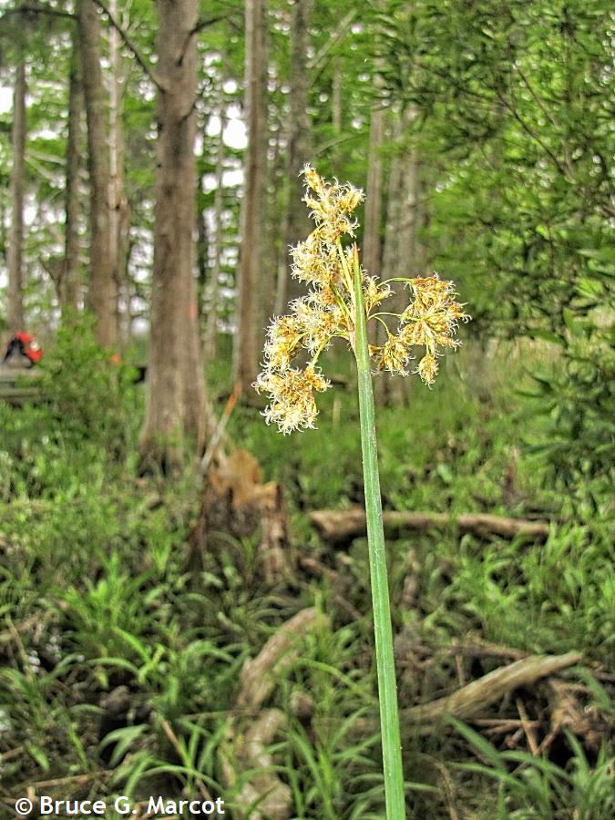 Explanation: Here is a widespread plant species, a "rush," that very commonly dominates marshes and swamps. As such, it can be termed a "monodominant" ... one species that rules them all. Here, it is late April, in swamplands along the Waccamaw River in South Carolina USA. It is heartening to slug through the saturated soils amidst this native species. I was happy to not see this ecosystem dominated by invasive species. According to the USDA Plants Database, the name chairmaker's bulrush has a wonderful origin: "American three square stems were used by the Nuu-chah-nulth [indigenous peoples of the Canadian Pacific Northwest coast] as the foundation material for their beautiful wrapped-twine baskets." It is also known as three-square bulrush and Olney three-square (referring to its triangular-shaped stems) ... and is known by a number of other scientific names.