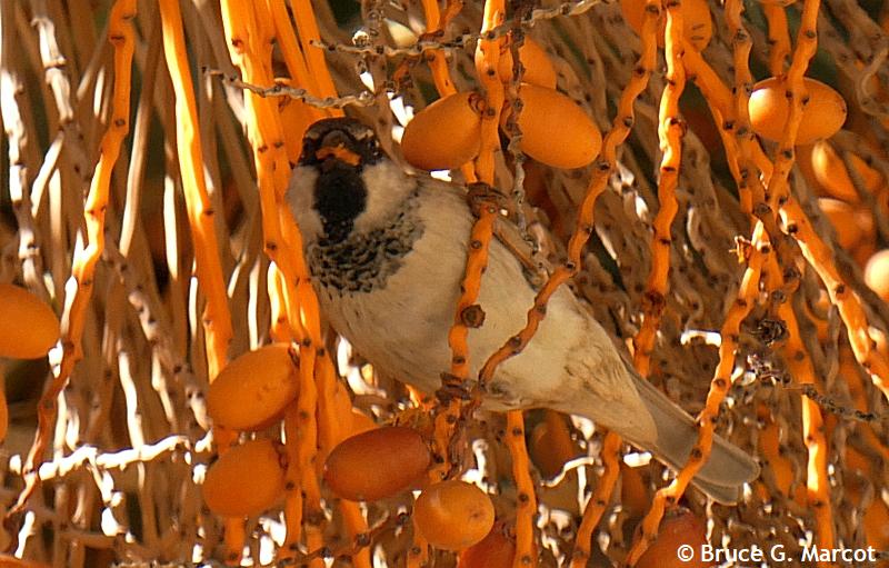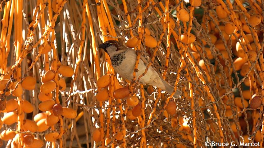 Explanation: Literally hanging out in a massive profusion of dates is this Italian Sparrow, here in the courtyard of the Palace of Ahmed Bey, in Constantine, northern Algeria. Also called the Cisalpine Sparrow, the Italian Sparrow is found in (guess where) Italy and parts of the Mediterranean. Indeed, "cisalpine" is defined as occurring on the Italian or Roman side of the Alps. The Italian, or Cisalpine, Sparrow is akin to the very similar Spanish Sparrow (Passer hispaniolensis) which also occurs in the northern Algeria region. Some sources suggest that Italian Sparrows do not occur in Africa at all, whereas others list it as resident there. The