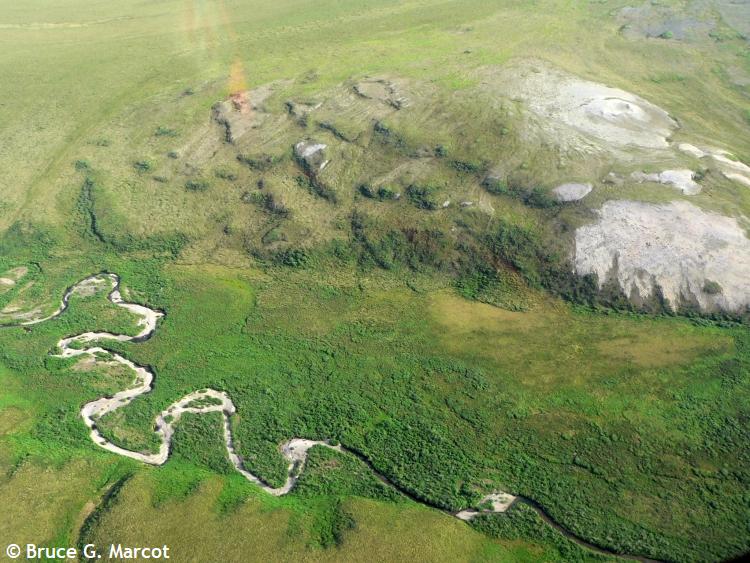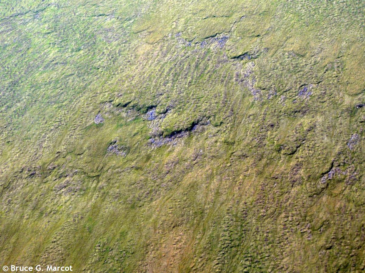Solifluction (sometimes called gelifluction when it is next to a glacier) can be seen in other parts of the high alpine and high arctic environments. Following are some examples from arctic Alaska.